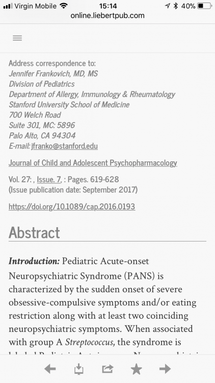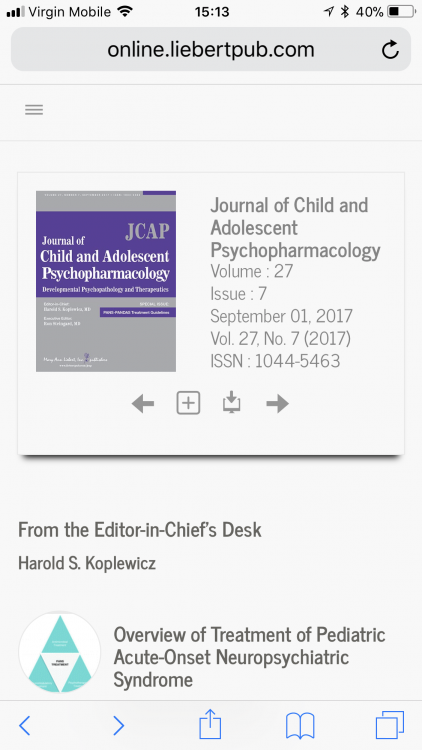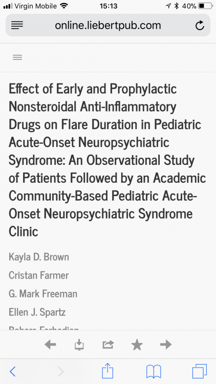 You probably already have this info but I came across a journal of child and adolescents psychopharmacology (Volume 27, issue 7) that researched the level of impact that anti-inflammatories have on flare up time. They demonstrated that it can shorten the average 12week flare up period by about 4 weeks by using anti-inflammatories. We’ve been using Advil, but this morning our son’s Dr swapped us to Naproxen 250mg x 2/day as well as continuation of Augmentin Duo 5mls/day. Within an hour of taking the Anti-inflammatories our son went from severe panic attacks & OCD etc.... to normal. Unbelievable! All the best with it all (I’m new on here so I hope this info posts 🙂). Cheers, Cath